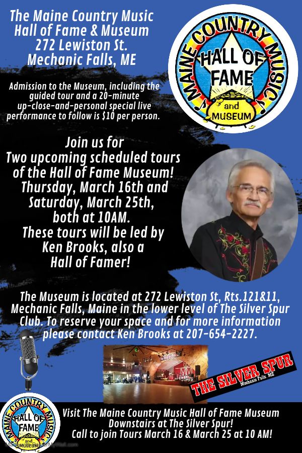 BMAM is one of six Maine country/bluegrass music organizations. The Maine Country Music Hall of Fame (MCMHOF) serves all these organizations by recognizing deserving individuals to be inducted into the Hall of Fame. BMAM has a large area of its own on display in the museum, and we encourage ALL of our members to visit and take an upcoming tour!